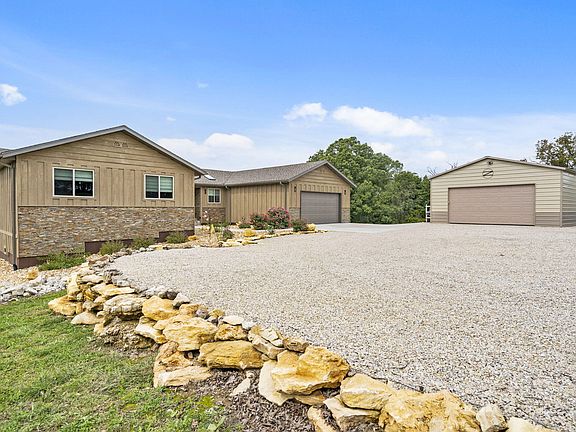 Have you been looking for acreage? You don't want to miss this property 40 acre parcel with cleared trails, campsites, and wet weather creek. The property is partial cleared and provides plenty of yard or pasture area for a small farm. Custom built home completed at the end of 2021, so many nice upgrades and touches to this home you just have to see it in person. northern Arkansas pine siding, open floor plan and plenty of natural light to enjoy your private back yard. The 24 x 40 shop building allows space for all your toys and lawn equipment. RV hookup site with water & electric, just off the side of the shop building. Fenced garden area with raised beds and plenty of fruit trees situated next to the green house. Seller also has all the toys for sale for add'l money you can purchase the UTV,ATV,Zero turn mower finish mower. This hard to find property is just minutes from Beaver Creek, Glade Top access to Mark Twain National Forest area with more riding trails. Area lakes nearby are Bull Shoals, Taneycomo, and Table Rock. The country feeling yet just a short drive to area shopping.