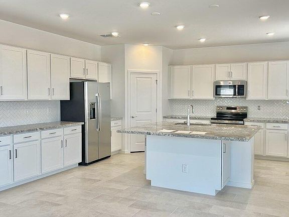 LOOK NO MORE! This LOT is amazing! Home is stunning!! Need a 4th bedroom with own full bath and walk-in closet downstairs?! Flex room downstairs and half bath for guests too!! Big loft! Upgraded stair railing, 9' ceilings on both levels, laundry up with washer & dryer, square bathroom sinks, window blinds, comfort height toilets, and it's an energy efficient Smart Home! Gorgeous interior with 12''x24'' tile and upgraded carpet! Entertainer's wish come true kitchen with white cabinets, herringbone design backsplash, chrome hardware, and granite countertops. You will love the OVERSIZED kitchen island with breakfast bar, cabinets underneath, GE appliances including refrigerator, and single bowl sink. THREE CAR tandem garage, 8' garage door, garage service door. This home is INCREDIBLE!