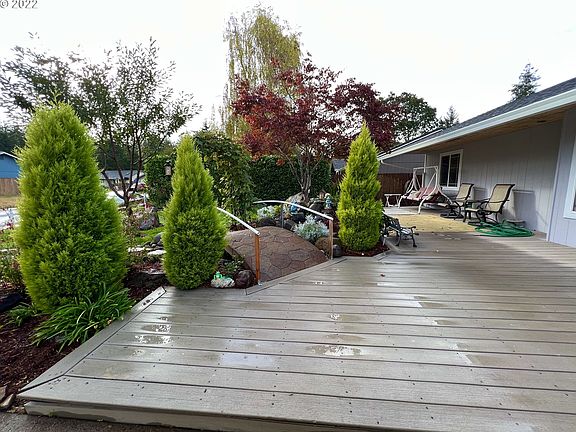 Custom Home w/architectural elements, open concept design. Gourmet kitchen, vaulted ceilings throughout, skylights & bay windows. Newer SS appliances, built-ins, central vac, generous size rooms incl. large Primary bedroom suite w/WIC, dbl vanity & glass door to patio. Covered patio in back and trex deck w/water feature in front for outdoor living. Home is well maintained with extra storage, stamped driveway, 1-yr. new heat/air system w/heat pump, many upgrades and located on a quiet street.