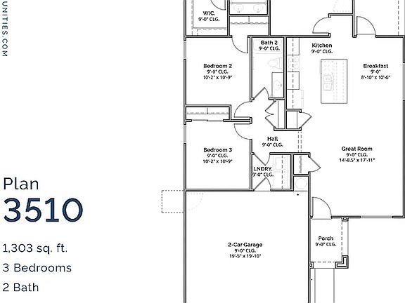- Total interior livable area: 1,303 sqft