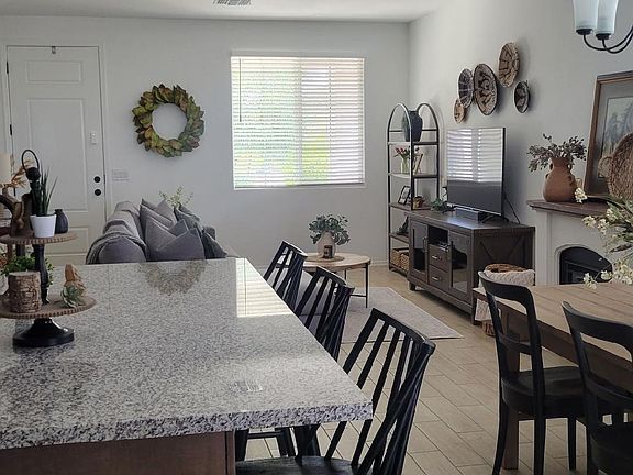 Built in 2023, this modern 3 bed, 2 bath home offers an open concept layout designed for today's lifestyle. The beautiful kitchen showcases stainless steel appliances, granite countertops, and ample storage, flowing seamlessly into spacious living and dining areas. Granite accents throughout add style and durability. Step outside to a large, low-maintenance yard with custom turf perfect for relaxing or entertaining. Located in a thriving Peoria community with parks, playgrounds, and top-rated schools, this is a must-see opportunity that won't last!