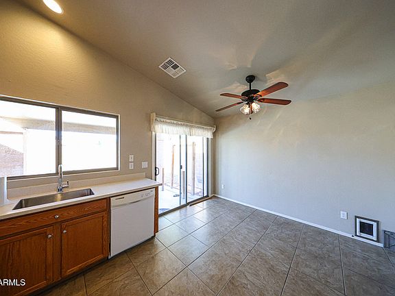 Welcome to this move-in ready single-level home featuring a bright open floor plan and vaulted ceilings that create a spacious feel throughout. The kitchen offers abundant cabinetry, solid surface counters, and white appliances, with a large window bringing in natural light. The primary suite includes a generous walk-in closet and private bath with dual sinks. Tile flooring in the main living areas ensures easy maintenance, while carpet in the bedrooms adds comfort. Step outside to enjoy a low-maintenance backyard with artificial turf, a fire pit, and a covered patio with privacy curtains- perfect for relaxing or entertaining. Additional highlights include a 2-car garage, neutral paint, and desirable curb appeal with tile roof and front courtyard space. Conveniently located near shopping.