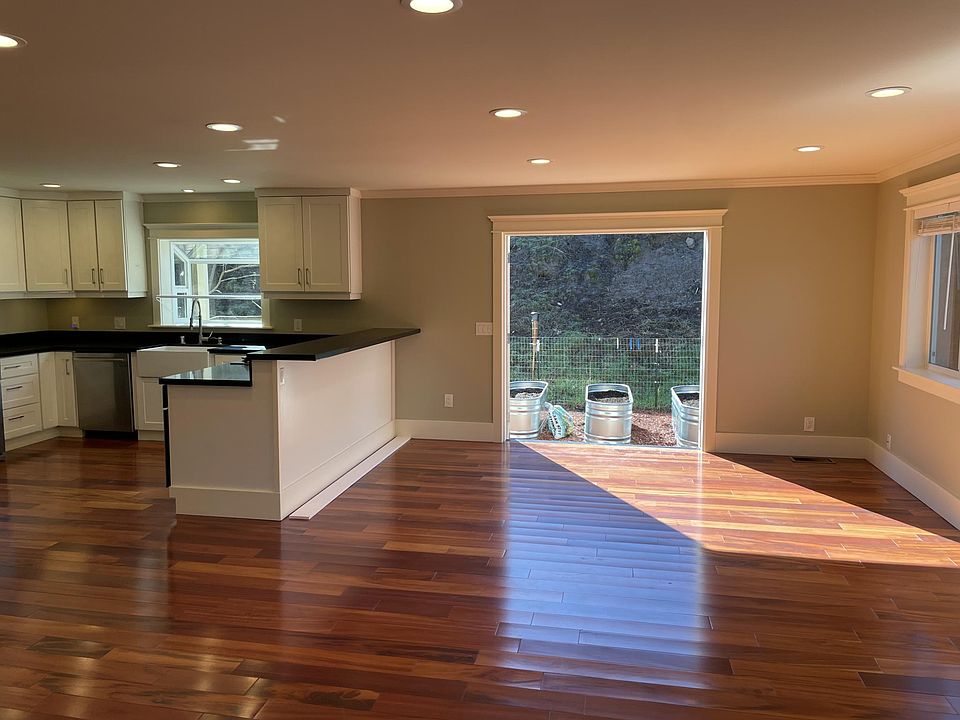 Fully renovated 4-bedroom, 3-full bath home for rent on 10 acres in West Sebastopol in the Twin Hills school district. Situated on a beautiful county road with very little traffic, this two-story, 1900 square-foot home features an extra 750 square-foot wrap-around covered deck and striking views. The first floor is an open-concept design with two French doors off the living area. The home has abundant natural light and large windows. The upstairs primary suite has a walk-in closet and ensuite bathroom with a dual vanity and tub/shower combo. The other two upstairs bedrooms have a large ensuite Jack & Jill bathroom with a double vanity and tub/shower combo. The downstairs bedroom/office shares a guest bathroom and shower across the hallway. The kitchen is open-concept with white shaker cabinetry, black granite countertops, a raised dining bar, a Bosch dishwasher, a garbage disposal, a porcelain farmhouse sink, and an attached dining area. The indoor laundry room/mudroom has hookups for a washer/dryer (which can be provided at cost from the previous tenants, if needed). The private home sits on 10 acres with beautiful views overlooking a creek. Frequent visitors include foxes, hawks, owls, herons, and bobcats. The private driveway leads to the home, which has ample parking. The home has both energy-efficient forced air heating and a large wood-burning fireplace. Other energy-saving features include a high-efficiency water heater and dimmable LED lighting throughout. All rooms have hardwood Australian eucalyptus floors, while all three bathrooms feature travertine stone floors, cast iron tubs with glass shower doors, and white marble vanity tops. In the garden, you'll find three raised garden beds and limitless potential to garden or landscape. Important notes The tenant is responsible for PG&E, Propane, Comcast & trash. The house is on filtered well water and septic. As a result, there is no water/sewer bill. Grass cutting and weeding on the property are included in the rent. Vacant and available immediately. 1-year lease term minimum. Pets are considered with an additional deposit. There is no garage. However, storage space may be provided. No smoking. To move in, need proof of income, $6300 (deposit) + $4200 (first month) = $10,500 to move in. Contact the owner Josh with questions. Tenant responsible for PG&E, Propane, Internet and Trash