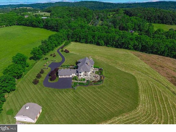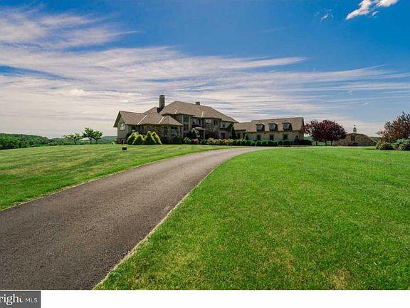 You won't believe the views! Preserved land surrounds this 360-degree view home with 14.5 acres of open fields. Enter through field stone walls and columns to be greeted by panoramic views of distance fields and hills of this picturesque estate. 140 custom windows allow you to take advantage of the glorious surroundings and flood the home with natural light. The field stone/stucco house has five bedrooms including a first-floor master with a second master bedroom upstairs. Special features include 2x6 construction; four fireplaces; designer moldings; hardwood floors; archways and columns. The house is magnificently designed for space and light. The entrance features a large limestone and granite two-story foyer with Gracious chandelier. Adjacent is the great room with two-story fireplace and windows. The gourmet kitchen with granite counter tops, custom cherry cabinets, hand painted tile fresco, Wolfe stove and Subzero refrigerator is every cook's dream. Off the kitchen, the two-story family room has wide-plank wood floors and floor to ceiling two-sided field stone fireplace shared with the library. The library has cherry custom cabinetry, coffered ceiling and finely crafted mantel. First-floor master has a large sitting room with gas fireplace, two master closets and a luxurious bath with jetted tub and limestone surfaces. A large field stone patio with fish pond and extensive landscaping maximizes your panoramic views. The finished basement features a game room, exercise room, and entertainment area. Attached is an oversized three-car garage. A two-horse barn with loft, wash and tack areas await your finishing touches. Equestrians will love this home's proximity to Bucks County Horse Park as well as three local horse farms and riding stables. Golf enthusiasts will be thrilled to be so close to Saucon Valley Country Club. Wine lovers will find the property to be ideal for a vineyard. Please see the attached specifications document for more details. Driveway was redone August, 2017.