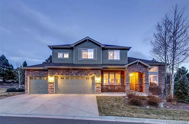 Semi-custom home on the 1st hole of the Plum Creek Golf Course. New hardwood floors on main level. Gourmet kitchen with slab granite counter tops, five-piece stainless steel upgraded appliances-gas cook top, upgraded cabinets, large island, kitchen table niche, and a built in computer desk. Open Floor Plan. The Living room features a gas fireplace and surround sound. French doors lead to the office with wainscoting and gas fireplace. Dining Room has attached butlers bar. Main level laundry/mudroom with sink, leading to the oversized attached 3 car garage. The master features en suite updated bathroom, tri ceiling, sitting area, two closets and private balcony. Upper level also features two large secondary bedrooms & updated bath. Large deck with outdoor speakers -overlooks a private large backyard & golf course. Basement has a fireplace, bedroom, bath, bar, rec area, family room, and storage. Located just minutes to downtown Castle Rock, quick I-25 access. Semi-custom home on the 1st hole of the Plum Creek Golf Course. New hardwood floors on main level. Gourmet kitchen with slab granite counter tops, five-piece stainless steel upgraded appliances-gas cook top, upgraded cabinets, large island, kitchen table niche, and a built in computer desk. Open Floor Plan. The Living room features a gas fireplace and surround sound. French doors lead to the office with wainscoting and gas fireplace. Dining Room has attached butlers bar. Main level laundry/mudroom with sink, leading to the oversized attached 3 car garage. The master features en suite updated bathroom, tri ceiling, sitting area, two closets and private balcony. Upper level also features two large secondary bedrooms & updated bath. Large deck with outdoor speakers -overlooks a private large backyard & golf course. Basement has a fireplace, bedroom, bath, bar, rec area, family room, and storage. Located just minutes to downtown Castle Rock, quick I-25 access.