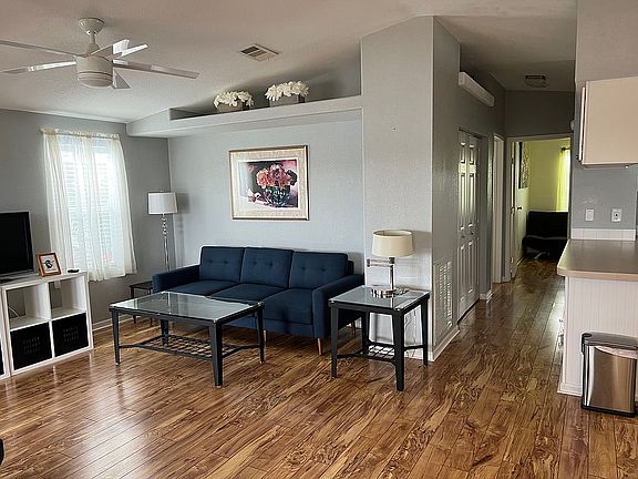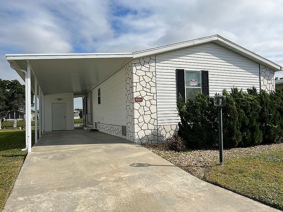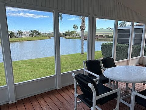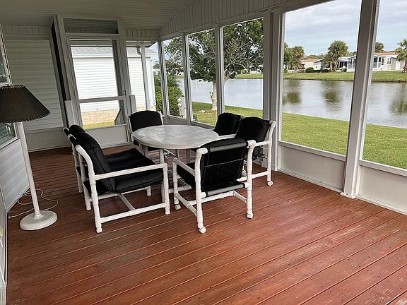Please call for questions or to see this Lovely furnished double wide home, with newer roof, new AC installed 2020, water heater 2019, screened in porch with awesome water view. Close to active clubhouse, pool, shuffleboard and tennis courts. Senior community, home is on leased land and all new prospective buyers have to be approved by management. Square footage of 912 plus 264 screened, covered porch on lake front.
