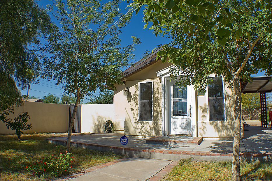 Light and bright, cheery Coronado Neighborhood home with a 2 bedroom, 2 bathroom floorplan, 2 walk-in closets, a kitchen with breakfast nook, covered side patio and front stoop. All appliances included. Laundry room includes washer and dryer and is steps from the side patio in rear of home. 4 slab parking spots available, 2 in front, 2 in rear of property. Professionally remodeled in 2011-2 to include refinished vintage hardwood flooring, butcher block countertops in kitchen, low-E dual pane windows t/o, all new modern finish fixtures, ceiling fans and details, security system ready for service, and high-quality Benjamin Moore paint t/o.