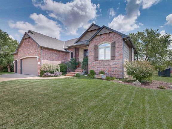 Chestnut ridge may just be the perfect neighborhood... pool, playground, lake award-winning Andover schools yet Sedgwick County taxes, and conveniently located right off k-96 close to the best shopping and dining in Wichita. You'd be lucky to live here, but a true lotto winner will call this house HOME! This one-owner Craig Sharp 5 bedroom, 3 full bath, 3 car garage has been beautifully maintained and is ready for YOU! The full-brick front with beam accents earns an A+ in curb appeal. The tile foyer welcomes you into the living room which is complimented by enormous picture windows overlooking the lush backyard. The hardwood walkway leads past the laundry room and into the large kitchen. Solid-surface countertops, eat-up bar, gorgeous cabinetry, a pantry so big you should leave breadcrumbs to find your way out, and all the appliances make this kitchen the heart of the home. The kitchen opens to the hearth room that features vaulted ceilings accented by beams, stone gas fireplace, door to the no maintenance Trex deck, and plenty of room for a dining table makes this the perfect place for people to gather. The spacious master has a coffered ceiling and huge sunny windows. The master bath has a soaker tub, large shower, and walk-in closet with plenty of shelving. On the other side of the home, you'll find two more bedrooms with fun features like coffered ceiling, decor cut in, and large windows, as well as a full bathroom with tile floor and granite counters. The basement stairs have a mid-level walkout - you'll love the fancy Pella slider with hidden screen and blinds on the inside, safe from dog noses and kid fingers. The enormous family room/rec room is complete with a stone gas fireplace, 12" window ledges, and wet bar. Two more bedrooms and a full bath with granite counters, as well as an ample storage room finishes the lower level tour. Outside you will love the Trex deck, concrete patio, low maintenance landscaping, and fully fenced back yard. With a new roof and exterior paint only 3 years old, this home is ready for all the seasons!