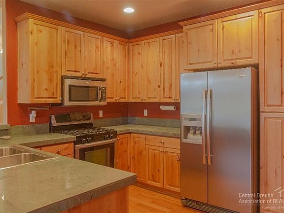 Located on Awbrey Butte, this Westside home is within minutes of downtown Bend. This is a 3 bedroom, 2.5 bath home with the master on the main and brand new bamboo flooring in kitchen and living areas. Master bath features include jetted tub and tile countertops. Kitchen features include tile countertops and stainless appliances. Enjoy the private and spectacular view of Pilot Butte from the outdoor patio. The spacious double car garage is alley accessed with ample parking for two cars in the driveway.