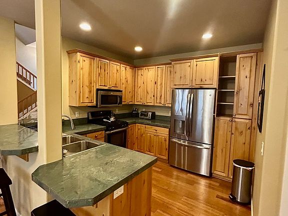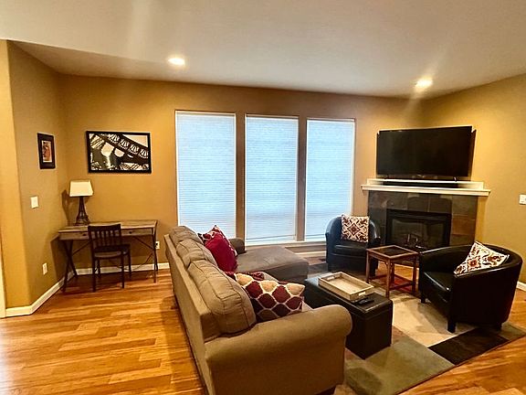 Stunning Awbrey Butte 3BR/2.5 Ba. This beautiful home features a private primary bedroom with a walk-in closet and a luxurious soaking tub. Enjoy the cozy ambiance of the gas fireplace and the abundance of natural light that fills the space through the large windows and vaulted ceilings. The modern kitchen boasts granite countertops and is fully furnished for your convenience. With the primary bedroom located downstairs, you'll have easy access to all the amenities this home has to offer. Stay comfortable year-round with air conditioning and take advantage of the 2 car garage with alley access. This home also includes an office nook, perfect for those who work from home. Conveniently located near shopping and downtown, this house is the perfect place to call home. This home is Furnished