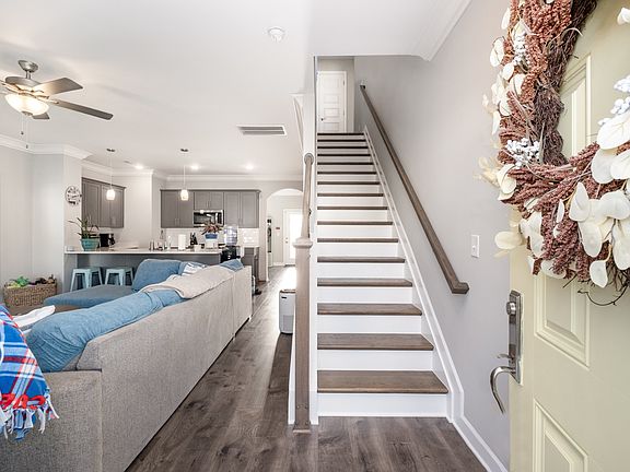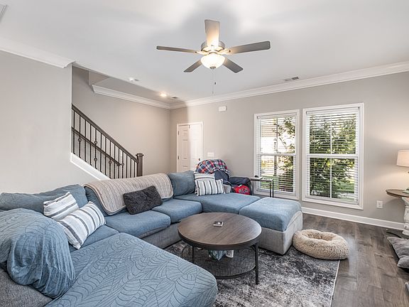 Step into this charming cottage in the sought-after Carter’s Station Village of North Columbia. Recently professionally landscaped, repainted and with carpets freshly cleaned, this home is truly move-in ready. This better than new Benton plan by Parkside Builders with so many upgrades offers a 2-bedroom, 2.5-bath layout with a versatile flex room that can easily transform into a 3rd bedroom or office. The open-concept design features soaring 9-foot ceilings and gorgeous wood laminate flooring throughout the main level. The kitchen shines with upgraded gray cabinets, white quartz countertops, crown molding downstairs, and a premium stainless steel appliance package—including a smart stove with touch screen and a brand-new refrigerator. Upstairs, the spacious owner’s suite boasts a private bath with a custom walk-in shower, with the shower and floor tile and grout professionally steamed. The secondary bedroom also enjoys its own bath, along with a conveniently located laundry area. Designer upgrades abound, including custom bathrooms, iron bannisters, wood stairs, and thoughtful details like a Ring doorbell and security system. Additional attic space with flooring provides even more convenient storage options. Storage is made simple with a shed and chest included. Enjoy easy entry from both the front and rear of the home, all while benefiting from a remarkably low $73/month HOA fee. With renting permitted, this home is not only perfect for everyday living but also an excellent investment opportunity. Ideally positioned just minutes from shopping and dining.