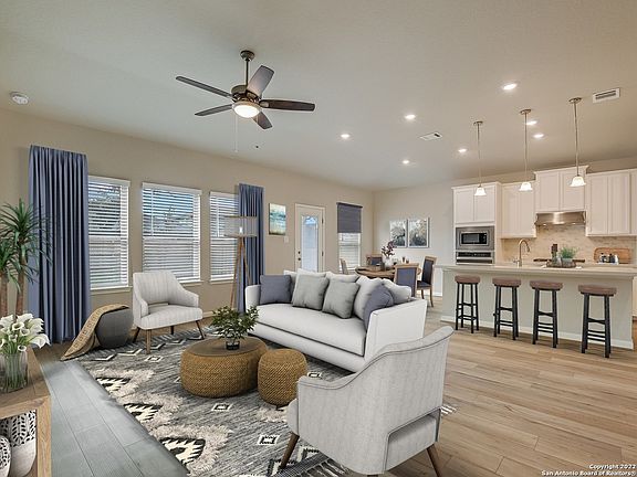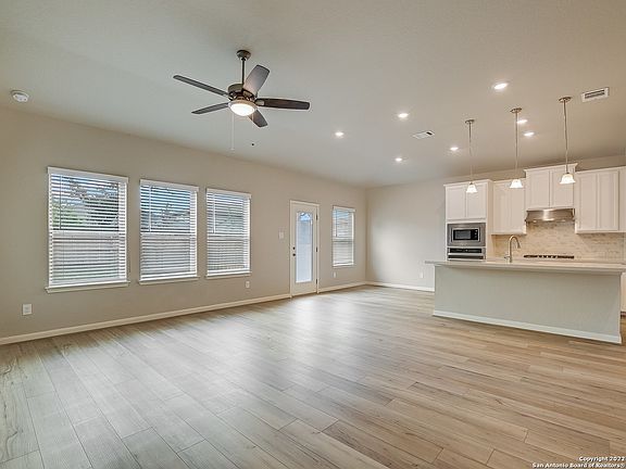 Brand NEW energy-efficient home ready NOW! Unwind in the Kendall's spacious private main level primary suite. Linen cabinets with white-toned quartz countertops, beige tone EVP flooring with dark gray tweed carpet in our Balanced package. Residents can enjoy beautiful surrounding hill-country views, a community pool, clubhouse, and playground. Shopping, dining, golf, and Sea World are just down the road. Known for our energy-efficient features, our homes help you live a healthier and quieter lifestyle while saving thousands on utility bills. Photos are of similar model but not that of exact house. Pictures, photographs, colors, features, and sizes are for illustration purposes only and will vary from the homes as built.