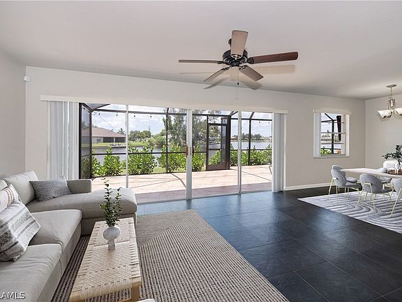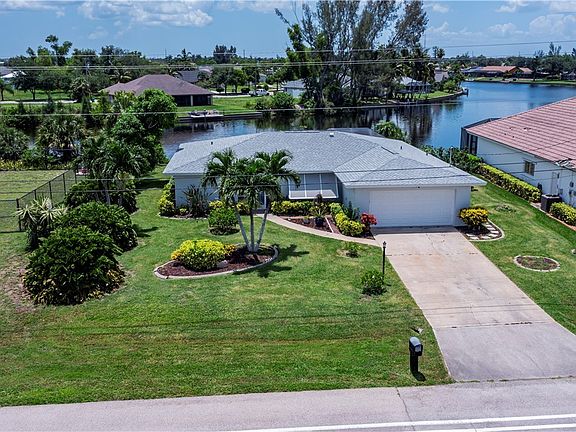 Nestled along a picturesque freshwater canal, this charming 3-bedroom, 2-bathroom home offers a tranquil retreat with stunning water views. Imagine waking up to the serene sounds of nature and enjoying your morning coffee on the spacious lanai overlooking the canal. With close to 2000 square feet of living space, this home offers plenty of room for guests or families. The master suite provides a peaceful haven with a private bath and his and hers closets, while the two additional bedrooms are perfect for guests or a home office. Step outside to your private backyard oasis where you can fish or kayak right from your own dock. Watch the sunset from your western facing fully screened in lanai. With lush landscaping and plenty of space for outdoor activities, this home is perfect for those who love both relaxation and adventure. Whether you're hosting a barbecue or enjoying a quiet evening by the water, this canal-front home offers the perfect blend of comfort and natural beauty. Plenty of room for a pool! This home is located in the much coveted southwest section of Cape Coral. Close to restaurants and shopping! Updates include-new GAF shingle roof installed January 2023, new air conditioner 2022, and new lanai screen June 2023. Matching tile flooring throughout. Easy to use Bimini shutters on most window for storm protection. Central water and sewer are in with ASSESSMENTS PAID! Not located in a flood zone. PRICED $35K UNDER RECENT APPRAISAL (attached). Come see this beautiful home today!
