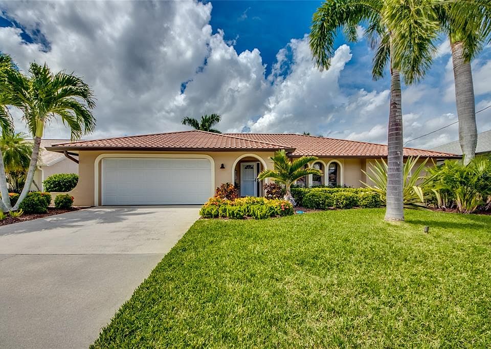 Step into this lovely renovated Floridian Ranch and be enveloped by the tranquility the coastal vibe emits throughout the Home. The redesign and remodel in late 2021/early 2022 offers exceptional selections --- quartz countertops, white shaker cabinetry, subway tile backsplash, stainless appliances, updated bathrooms, recessed & pendant lighting, plank tile flooring throughout --- and has brought this diamond glistening into the millennium. New systems in place as well --- HVAC & Hot Water Tank August 2021, Garge Door October 2021, Pool Pump & Pool Heater November 2021, and the Deep Drawn Steel (metal) Roof September 2023. The Aluminum Screened Pool cage was replaced in May 2023. The yard is enhanced with rich well-manicured landscaping, tropical trees, exterior lighting, and a walkway from the lanai to the dock. Composite decking at captains walk and new canopy & cover over the 10,000lb lift has been added. You can drop your boat from this SE Cape location with a 0.5-mile idle to the Caloosahatchee and on out to our water wonderland of fish estuaries, world-renowned beaches, and a multitude of waterfront restaurants. Overall Stunning! and Ready to make YOURS!