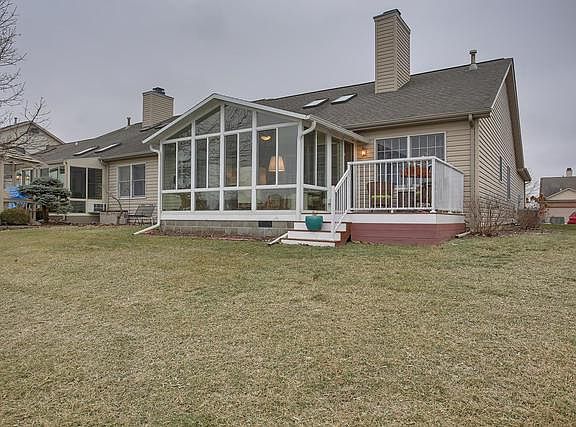 Amazing views in this pristine Condo on the Lake! Soaring ceilings rise to the sky lights that allow tons of natural light in the family room with Brick Fireplace! Take in the New Sun room with Tiled floors that visually seems to float on water with heating /cooling system. Spectacular! Most of the home has New HEATED tile flooring so your feet never get cold. Private Master Suite with all the amenities. 2 more bedrooms, one with vaulted ceiling. Gourmet Kitchen with tons of cabinets, Corian counter tops and quite breakfast nook. Enjoy the deck for outdoor entertaining of guests by the water. This is a must see home. Call today!!