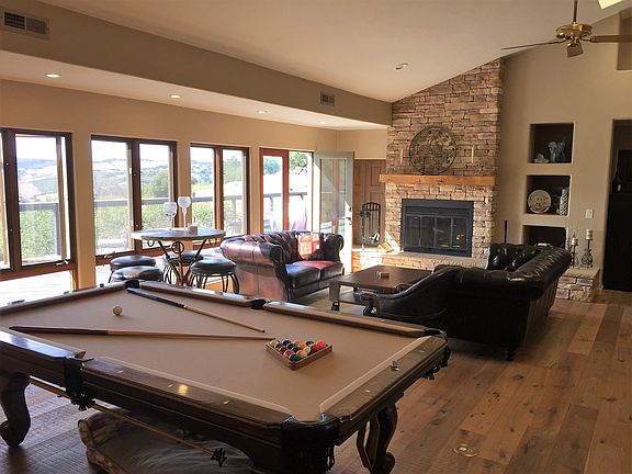 Enjoy the panoramic views of sunrise and sunset from this spacious home and deck. Home is move-in ready and features a newly remodeled open kitchen which includes custom cabinets, counters and high end appliances in stainless steel. Large island with seating make it perfect for socializing. Great room is flanked by custom fire place on one end and room for an 80" TV on the other. Great room also opens to a west facing expansive deck perfect for family BBQ's or romantic dinners for two. Great room windows capture the sunsets each night. This home has two master bedrooms. Primary master suite complete with fireplace and a walk in closet. Separation between the master suite and the guest rooms provide privacy and quiet. Fifth bedroom is located near the master and is currently used as an office but would make a great nursery or play room. Sunset views are picture worthy and all yours off the large deck. HOA fees are annual. A MUST see! Broker/Agent and seller are related