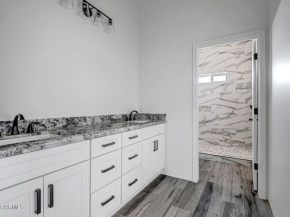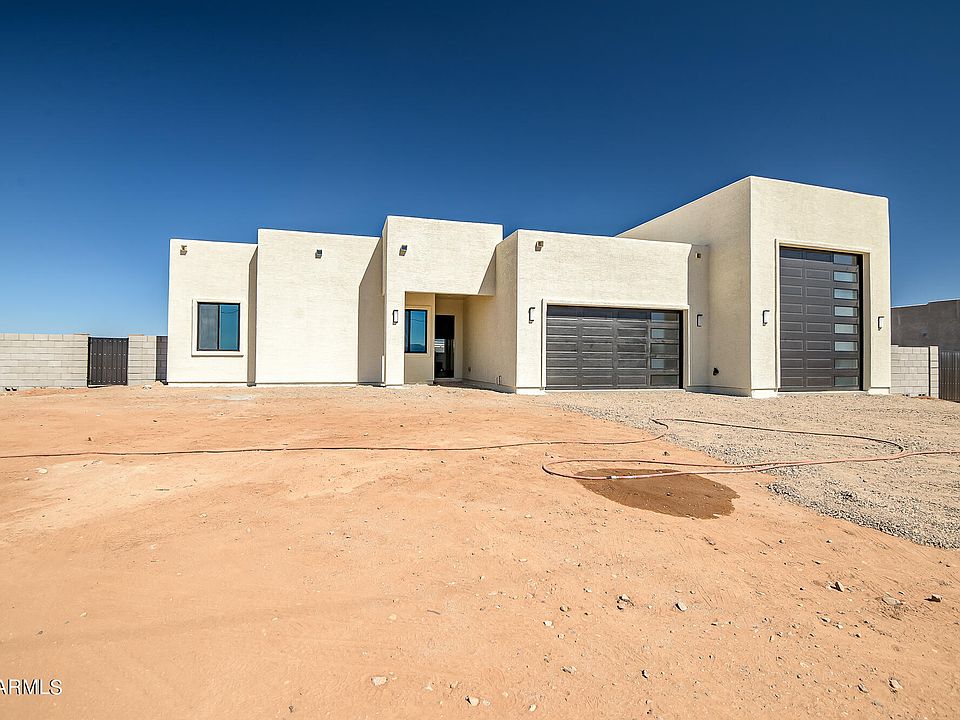 Brand New Modern Custom Spec being built to perfection! Home will be done in less than 30 days! Come complete with a $40,000 block wall around the entire property. Includes oversized 2 car garage open to a 20X50ft RV Garage all nestled on over an acre of flat land with awesome mountain views. Inside home is open & bright with modern windows and front door. Kitchen is fantastic w/ island breakfast bar covered in level 3 granite. 2x6 exterior wall construction and loaded with upgrades. Bedrooms are spacious w/ master having walk in closet & bathroom w his and her vanities and walk in shower. A fantastic floor plan nestled on a flat usable acre w/ awesome mountain views to the north and south. Backyard faces north. This property is located around upscale site built custom homes. No HOA!