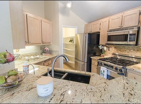 SPACIOUS FLOOR PLAN WITH HIGH CEILINGS, LARGE LIVING AND DINING ROOM, UPGRADES THROUGHOUT AND ATTACHED GARAGE! Exceptional end unit location with private entry and direct access to large attached garage, spacious living and dining room with fireplace and high ceilings, awesome kitchen with granite counter tops, high end stainless steel Decor appliances, drinking water system under kitchen sink, large walk-in pantry and breakfast bar. Spacious master suite with vaulted ceilings and large master bathroom with large vanity, granite counter top and large tub and shower, walk in closet plus second closet with mirrored closet doors. Second full bathroom with upgraded granite counter top and fixtures and added granite accents at staircase. Conveniently located full size inside laundry area, large deck with extra storage space, added water filtration system, upgraded thermostat, all upgraded HVAC system less than 5 years ago, upgraded lighting fixtures and re-piping completed by the HOA. All this plus the resort style community pool and spa, easy toll road (73) access, shopping center, and excellent proximity to nearby hiking, biking and nature trails.