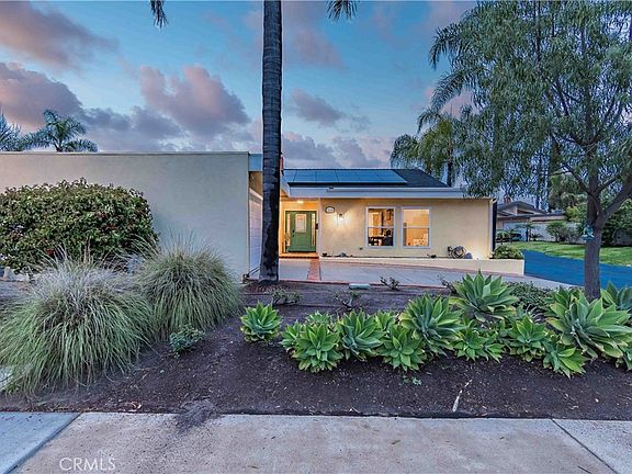 This stunning, single-level smart home has been beautifully remodeled with a flowing floorplan, vaulted ceilings, and a ton of natural sunlight. This home features 3 bedrooms and 2 bathrooms, including a primary suite with high vaulted ceilings, direct access to the pool, and a remodeled ensuite bathroom with dual sinks and a beautifully tiled shower. The remodeled kitchen is a chef's dream, with white shaker cabinets, soft-closing drawers, granite counters, and stainless steel appliances including a double oven, gas range and hood, refrigerator, dishwasher, and microwave. The living room boasts a beautiful "Fire 'n Ice" fireplace and vaulted wood beam ceilings, with large windows that allow ample sunlight and breathtaking views of the stunning backyard. The backyard truly is a private oasis, with lush landscaping providing a sense of serenity and privacy. The large pool and spa have recently been refinished with Pebble Tec, a baja shelf, water feature, and a newer pool heater, making it the perfect place to relax and unwind. For those who love to entertain, the built-in BBQ with a Recteq wood pellet smoker/grill is a wonderful addition! The backyard also includes a dedicated dog run with an autoslide motion sensor door and artificial turf, providing a safe and comfortable space for your furry friends to play and exercise. Numerous upgrades have been made throughout the home, including luxury vinyl plank floors, newer interior and exterior paint, ev charger, solar panels, newer water heater, newer HVAC, dual pane vinyl windows, LED recessed lights, smart outlets and switches, smart garage door, smart window treatment, and ceiling fans. This home is a dream come true for anyone looking for a luxurious and relaxing lifestyle, with all the amenities you could ever want, and more.
