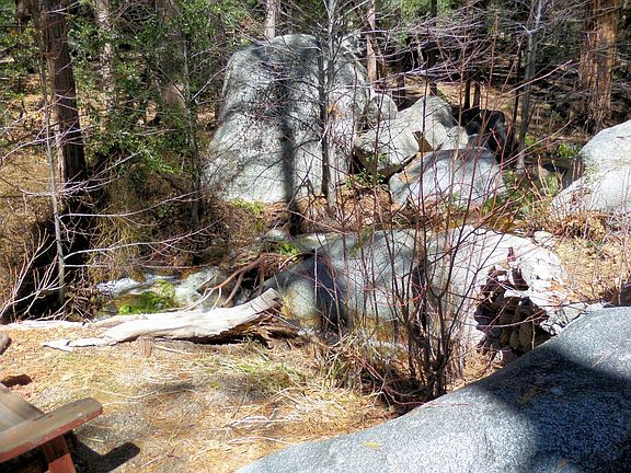 The ultimate" creekside cabin" in Fern Valley on Indian Rock Rd .sits this adorable rustic cabin with gorgeous Marion Creek in the rear. One bedroom, small den and 1 bath. Low river rock wall surrounds this generous lot. Classic pine interior with a large river rock fireplace! Wooden draining board in the kitchen, upon the entry is a nice front porch made into a den. Open Dining area. Large rear decking with views of the trees and creek. Huge boulders adorn the backyard lending a real mountain feel. Comes furnished & move in ready. Near the end of the road for privacy and peace! You will love it.