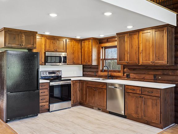 Hard to find log home on nearly 40 acres of beautiful high ground in Pine River, Minnesota. You will love this recently remodeled home with 3 bedrooms, 2 baths, main floor primary suite, coved deck, vaulted ceilings, gas fireplace, walk-in pantry, full unfinished lower level for future expansion, mature hardwoods and pine trees. Finally you will enjoy peace and quiet around your private pond and opportunities for tons of outdoor recreation.