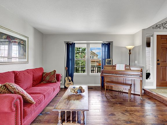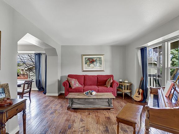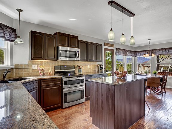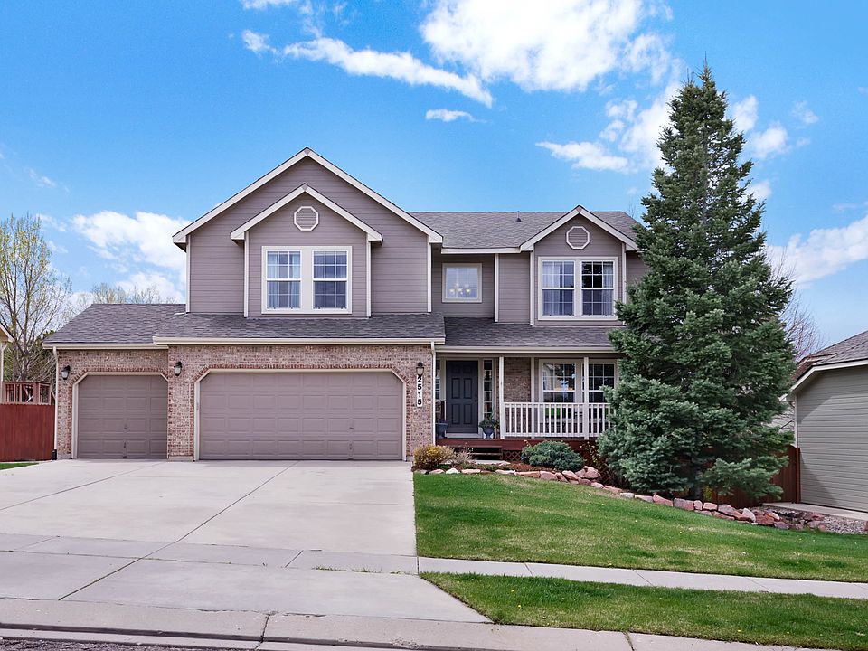 Unbelievable 2-story at Creekside in award-winning school district 20! From the second you step onto the charming front porch you will know that you have found your dream home! Enter the home into the large foyer with beautiful wood flooring that continues throughout the entire main level. There is a separate formal living room and dining room to spend time entertaining family and friends. The dining room has a large bay window with gorgeous mountain views! The spacious 2 story family room has vaulted ceilings, a gas fireplace with brick surround, and floor to ceiling windows! The family room leads into the gourmet kitchen where the chef in the family will enjoy spending time! Granite countertops, all stainless steel appliances, storage pantry and a large island make this a room the entire family will gather in! There is a dining nook directly off the kitchen and a walk-out to the huge covered, low-maintenance, Trex deck. The deck is truly magnificent with breathtaking Pikes Peak and front range views - your own private retreat to enjoy all that beautiful Colorado has to offer! The upper level has a large master bedroom, also with floor to ceiling windows, with it's own private en-suite that has a modern soaking tub, spa-like walk-in shower, double vanities and a walk-in closet! There are 2 additional bedrooms on this level AND a loft area that is perfect for a home office, music room, or whatever suits you! The fully finished basement has a theater room to enjoy movie nights with family! There are two additional bedrooms on this level and another full bathroom that has private access to one of the bedrooms - perfect for overnight guests! The basement has a walk-out to a stamped concrete patio! This home must be seen to be believed - come take a look today!