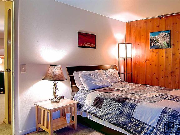 Great ground floor unit just steps away from the pool/hot tub area and free bus stop, 2 min to base area. Excellent location with tons of sunshine, large deck for grilling and no stairs to navigate. Huge vaulted ceiling in the main room, main level master with sliding glass door to deck. Upstairs has a great hide away murphy bed and bunk bed along with a seperate bedroom so property can sleep 8+. Excellent rental potential.