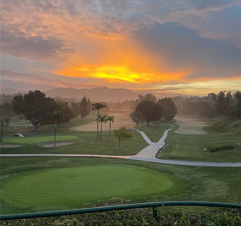 "Arroyo Vista" - A rare offering of one of six units that sits adjacent to The Victoria Club. These coveted units rarely hit the market. Stunning views of the golf course (sits above the 10th hole tee box), mountains, hills and Downtown Riverside. The current owner completed an extensive remodel, which included modernizing the footprint into a 3 bedroom (primary bedrooms up and down), 2.5 bathrooms and an office. Enter through a large covered serene courtyard that offers abundant space for outdoor living and relaxation. The entrance is on the top floor, which has an open concept with a great room that flows into the kitchen with a large granite center island, stainless steel appliances and ample storage space. There is also a primary suite and bath with a walk-in closet, powder room, laundry room, as well large balcony overlooking the course. On the way down to the second level there is a temperature-controlled wine closet with room for approximately 600 bottles of wine. The bottom floor consists of the second primary suite, a 3rd bedroom, spacious bathroom with a large soaking tub and separate shower, as well as an office with custom built-ins. Both bedrooms offer access to another large stone covered patio that is the perfect setting to watch the sunrise with a cup of coffee. Thoughtfully, tastefully decorated and well-appointed with crown moulding throughout, split A/C, electric shades, wood flooring on most surfaces, epoxy flooring in the garage and so much more. This is the perfect opportunity for the well-heeled buyer that is tired of maintaining a large home, or for someone that is looking for an easy lock-and-leave property. Don't let this opportunity of a lifetime pass you by!