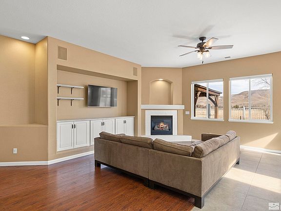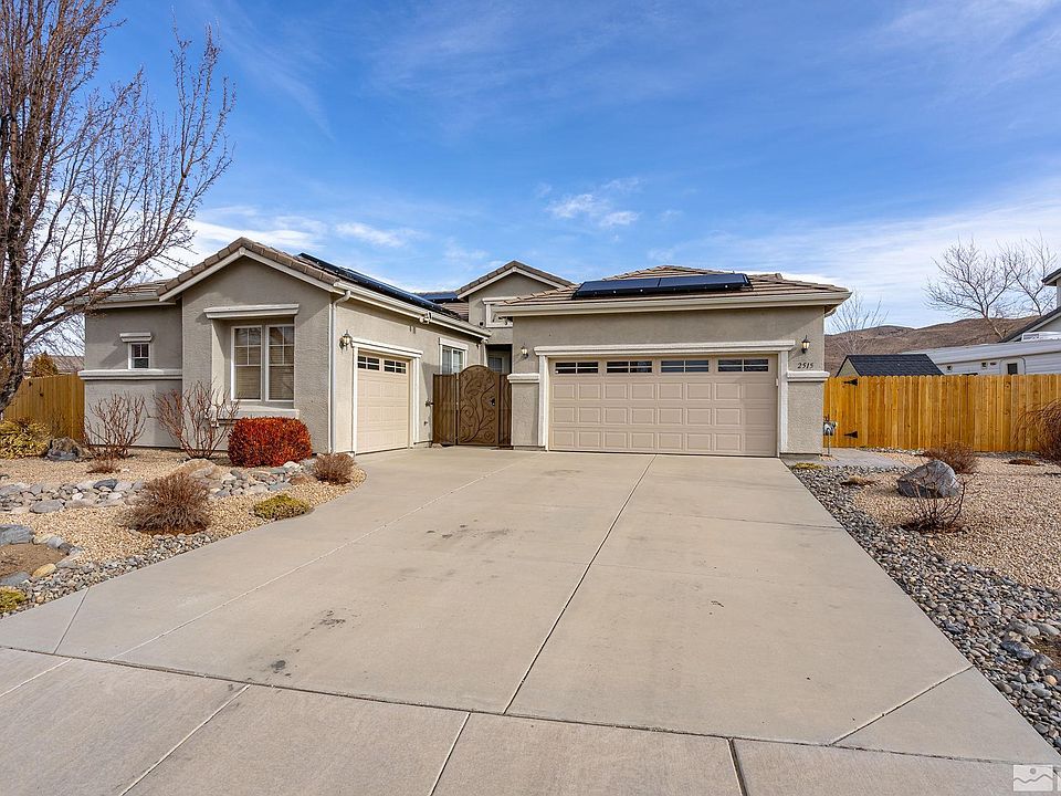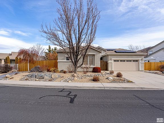 Welcome to your dream home in a highly sought-after neighborhood of South Reno! This stunning 4-bedroom, 2-bathroom gem is perfectly positioned on a spacious, curved lot, offering expansive views of the mountains and tranquil wetlands, with no back neighbors in sight. Step out your front door, and you'll have direct access to scenic walking trails – perfect for nature lovers and outdoor enthusiasts., Featuring a Tesla Solar Power System with 19 panels (paid in full), you’ll enjoy energy savings for years to come and a Tesla Powerwall so you will be safe from any outages. Step inside to experience a great open floor plan with upgraded black and white kitchen with newer appliances all that stay. Other features of the home included a new hot water heater, ensuring efficiency and style at every turn. The insulated garage doors add a practical touch to the attached two-car garage and the separate one-car garage, giving you tons of storage space. Your private backyard oasis is the perfect place to unwind, offering breathtaking mountain and wetland views. Relax in the hot tub, which comes with an easy-to-use shock-assisted cover for ultimate convenience and privacy. Located in a highly desirable area, this home is just moments from parks, schools, shopping, and all that South Reno has to offer. Don’t miss out – this home is a must-see and won’t last long!