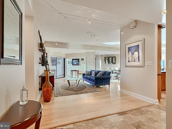 This updated luxury waterfront condo in the amenity rich Anchorage Tower building has been impeccably maintained & updated. It offers stunning water views from the moment you enter. Some updates include the kitchen, bathrooms, lighting, and wood flooring throughout the open floor plan living space of the living room, dining room, and both bedrooms. The updated kitchen was designed with the at-home chef in mind & includes stainless steel appliances, ample counter space & storage in the rich, wood cabinetry. The water views are breathtaking & there is a large, private balcony with complete westward city skyline views. Fantastic for the 4th of July firework's! The water views continue into the primary bedroom suite which offers California closets and an updated en-suite bathroom with custom tiled shower. The well thought-out design carries through the entire space with the 2nd bedroom & 2nd full bathroom being located just down the hall, There is ample closet space within the unit plus a private, separate storage locker as well as a secure bike storage room in the garage. Additional building amenities include 24/7 concierge, a gym/exercise room, and a community/entertainment room with wet bar. The condo fee includes water and sewer charges and this is a pet friendly property. This highly sought after building sits along the popular waterfront promenade and is located in Canton, one of Baltimore's premiere communities, which boasts some of the city's top restaurants, boutique shops, and nightlife. Enjoy the convenience of this location with Starbucks, grocery shopping, and a multitude of restaurants directly across the street plus the green spaces of a waterfront park right next door. Secure, gated parking (2 designated spaces plus ample guest parking) on-site concierge, and cameras throughout provide an additional level of security and add to the ease & comfort that come with living in a full service condominium in the heart of one of Baltimore's most desirable neighborhoods.