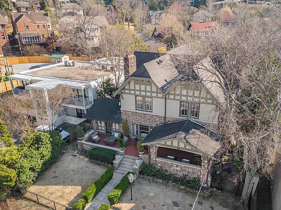 This circa 1922 craftsman-style Tudor home in historic Highland Park is an architectural masterpiece. It has all the best-preserved details of its era while updated for today's living. The open, spacious kitchen is fabulous with its cooper and granite countertops, high-end appliances, wonderful cabinets, and inviting breakfast area. French doors lead out to a New Orleans-style courtyard with multiple sitting areas, a huge fountain, iron trellises, arbors and a hot tub. It's a private oasis in the city. The property has an amazing guest house/studio/office space which adjoins the double-car garage. The large front porch is a showstopper at sunset. Three bedrooms and two bathrooms are upstairs. The fourth bedroom was converted to a large walk-in closet. Grand living and dining space along with a sunroom area are on the main level. A workout space/bonus room is in the basement. This is a must-see!