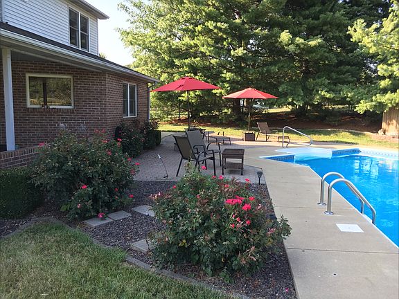 Beautiful west-side home sits on 2.5 acres in quiet subdivision that is just minutes from shopping. Main level has open kitchen with living room that has dual sided gas fireplace. Kitchen is open concept to living room that has sliding doors leading to poolside patio with hot tub. Kitchen has large walk-in pantry with built in shelving. Main floor has 2 other large rooms that could be used for an office, playroom ,formal dining, or an additional living room . The large laundry room with cabinetry and shelving leads to 2 car garage with half bath that is perfect for pool guests to use. Second floor has master bedroom / master bath with jetted tub and separate shower, 3 bedrooms and additional full bath. Also has 2 car detached garage that is 30 feet deep. Unfinished 3/4 basement that walks out to large yard. Large beautiful well cared for lake in front of house with lake rights. Recent updates include new tile/carpet on main level, paint main level, new pool cover, new pool pump, washer /dryer, and hot water heater in 2015 . New kitchen appliances and tile 2017, new blacktop on driveway 2019. Open house has been cancelled on Jan 5th due to pending offer.