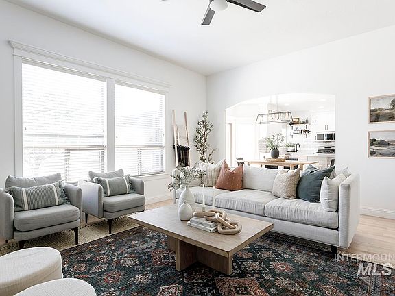 Swoon worthy remodel by Simply Styled Interiors! True 4 bedroom with office + flex/bonus room downstairs. Maple hardwood floors, new kitchen with high end quartz, new appliances, gorgeous fireplace. Custom woodwork accents throughout. Spacious bedrooms & bathrooms! Oversized garage with workbench, storage & shed. Laundry room features built in cabinets. Mature landscaping, large backyard pergola. No rear neighbors, EVER! Backs up to 5 acre Champion Park with walking paths, playground and tons of green space! Ideally located just off the Eagle Road corridor between Ustick and McMillan, with easy access to schools, shopping, Interstate 84 & everything the Treasure Valley has to offer!