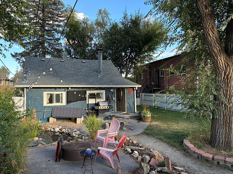 Technically it is 3 bedrooms but the downstairs bedroom is currently in use as an office. There are two bedrooms on the upper level that are each about 10'x16' with slanted ceilings and one small closet. The available bedroom faces north and has one medium sized window. The rest of the house is shared space, including a dining room, living room, and kitchen. The kitchen includes a dishwasher and washer and dryer. Most of the rest of the house is currently furnished outside of the available bedroom. There is a very nice backyard with a patio, koi pond, and shed for additional storage space. One uncovered off-street parking spot is available. Hi! I am seeking a roommate to fill a room in a house in Edgewater. The house is conveniently located several blocks from Sloan's Lake, the Edgewater Public Market, Target, and King Sooper's. Rent is $2,500/month total, split evenly. Utilities usually end up around $200-250/month. The room is available basically immediately, but the owners of the house would like to meet any future tenants and run a background check prior to any lease signing. Ideally, the new lease would start November 1st and run through the end of April. The owners plan to reset the lease term to start in the spring but there will be an option to renew at that time. The house is mostly furnished outside of the available bedroom. There is no need to commit to a renewal so this might be a good option for someone looking for a place for 6 months.