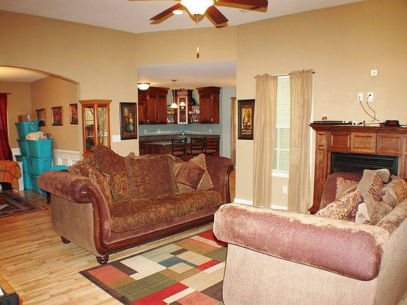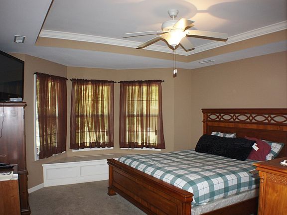 10' ceilings in great room & one bedroom! Split plan. Smooth ceilings! Tray in master. Granite, custom maple cabinets, all kitchen appliances stay, island & bay window in Breakfast room. Formal Dining. Backs to TREES! Covered porch, patio, well for watering lawn and washing cars!