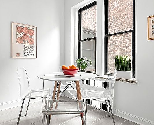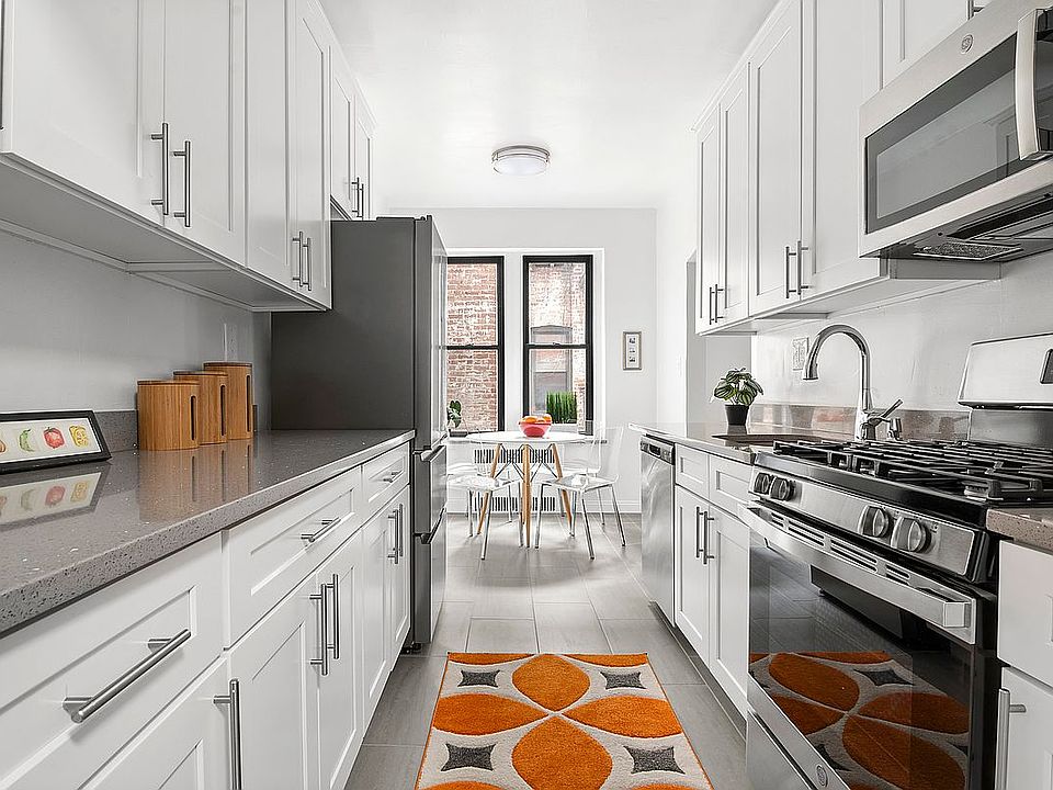 This newly renovated, sunny one bedroom apartment is a move-in ready home! A windowed galley kitchen has all new tall white cabinetry; stainless-steel appliances, including a Haier fridge with center cooling drawer and GE stove and dishwasher; lots of counter space; and a charming breakfast nook. The living room is extra large, and there's no end to the creative furniture arrangements you can employ. The bathroom is also new and has a tub and shower, pedestal sink, crisp white tile and a window. The bedroom is also beautifully proportioned: no bed would be too large for this room! Two closets and two exposures provide great storage -- and light. The apartment has nine-foot ceilings, dark oak floors, a deep hall closet, separate linen closet and a roomy entry hall.
