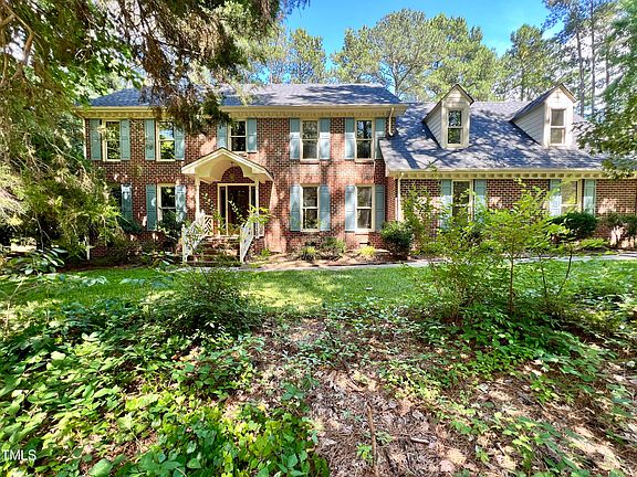 Great opportunity to own a spacious all brick home on .73 acres. 4 Bedrooms 3 full baths. Formal Living and Dining Room with Hardwood floors. Wood Molding. Spacious Loft with plumbing available for sink. Unfinished 3rd floor.Downstairs bathroom equipped with accessible shower. Large Owner's bedroom has double closets. Built-in shelves. Owner's bath has double granite vanity, Whirlpool tub, separate shower. Roof replaced 2023. HVAC less than 3 years old. Access rear deck through multiple exits. Private wooded lot. Over 600+ square feet of unfinished space. Home sold As-Is seller offering Home Warranty for Approved offer. Perfect canvas for upgrading needs cosmetic updates. Ready to move in while updating. No HOA dues or City Taxes. 15 min drive to downtown Raleigh. Nearby Neuse River Trail.