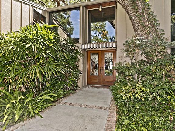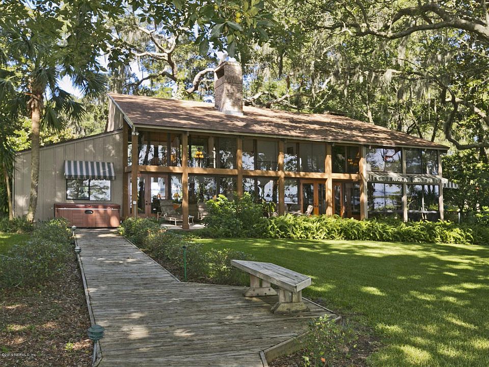 Are you looking for a home that offers privacy and serenity? Look no more! This 4 bedroom waterfront home sits on 196 feet of fantastic river front views of the majestic, broad St. Johns River in the midst of 2 acres covered with hundred year oaks located in the most prestigious area of the city with million dollar homes. Not your ''''cookie cutter'''' home, this one has high ceilings and walls of glass for you to take in the incredible sunrises and wild life the river brings everyday. Unique, contemporary, and architecturally designed for this setting.There is a sparkling salt water pool, artesian well, 2+ fireplaces, multiple deck areas, 3 car garage, incredible closet space, dock with boathouse for up to 60'' boat, boat lift, and jet ski lift.Several rooms could be a 4th Bedroom