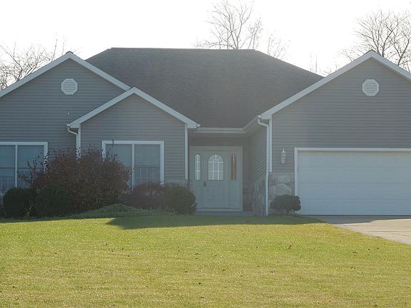 Modern home for the modern family! Expansive living room, dining area and kitchen combination. Gas log fireplace highlights the area and glass doors lead to the deck and patio. 1st floor laundry. Bedrooms are located in separate wing on the main level. Big master suite with a great walk in closet, bath and Jacuzzi. Kitchen floor is real wood and all appliances included. Granite counters with eating bar. Dining area has nice built in service buffet, along with gleaming wood floors. Full basement contains lots of storage, possible 4th bedroom, modern mechanics and a large recreation room. Large lot with possibilities for a future shed or swimming pool. Hanover-Horton School District!