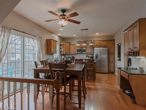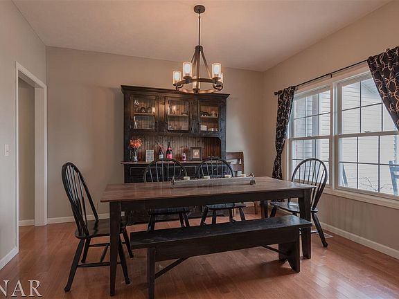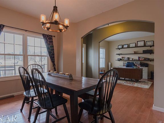 Fun floor plan w/ open turned staircase, rounded archways, upgraded hardwood & tile flooring, new carpet 2017. Large eat in kitchen w/ granite counters, GE stainless steel appliances, center island, planning desk, walk in pantry, convenient 1st floor utility, doors lead to deck and fenced yard. Family room with gas fireplace. Master suite w/ french doors, jetted tub, double sinks, separate shower, walk in closet, tile floors and corian tops. Extra large 3 car garage! Family friendly, welcome home!