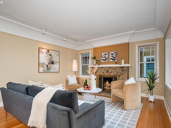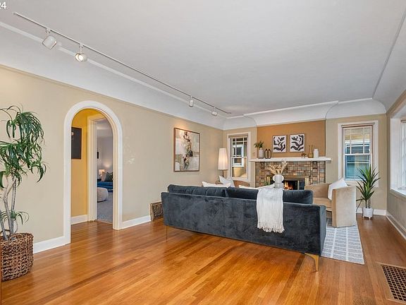 English "cottage" located in popular Grant Park - beautifully updated and maintained. Many original features keep the charm while the many updates make this a pleasure to live in. It all starts with the arched front door that repeats itself in the living area. The living room features hardwoods, gas fireplace with original decorative tile, coved ceiling and speciality art lighting. The dining room features original leaded windows and a stunning period light fixture. The kitchen was completely updated with custom cabinets, heated terrazzo tile floors, wood drawers with undermount/soft close, under counter lighting, built in pantry, full tile backsplash, and more. Main floor bedroom is currently being used as a family/sitting room. Full bath is on the main for convenience. Second floor has two large bedrooms with walk in closets and a full bath. Carpet over wood floors on the second floor. Lower level has a family/gathering room, oversized bedroom with area for desk/workout space or ? Third bath on this level. The fully fenced private backyard has a huge patio space as well as covered sitting area and storage room. Extra deep garage has plenty of space for bikes, kayaks, etc. OPEN SAT 11-1 and SUN 12-4. [Home Energy Score = 1. HES Report at https://rpt.greenbuildingregistry.com/hes/OR10233298]