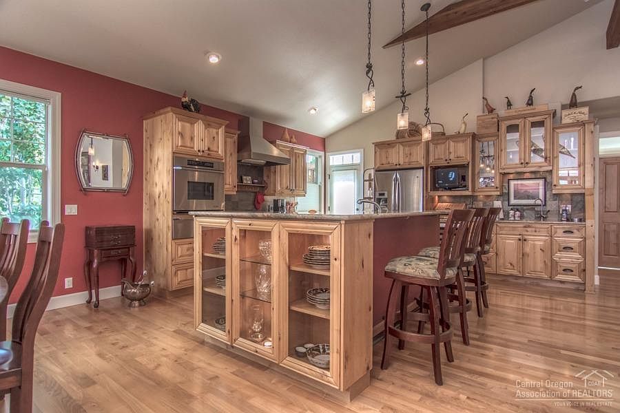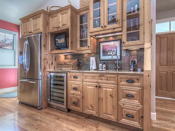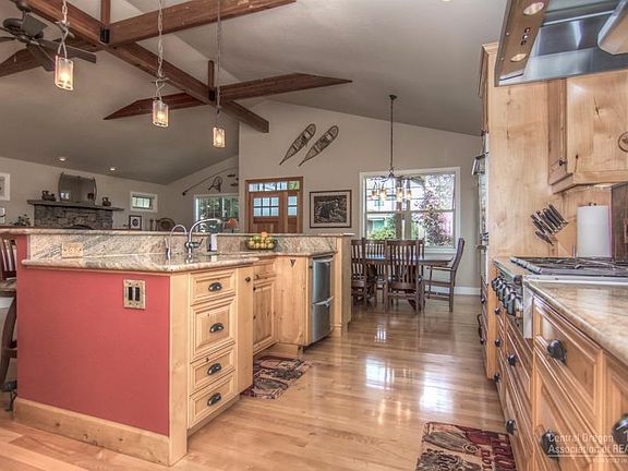 Extensively remodeled NW home minutes from Downtown Bend. Open Great room w/beam ceilings & Montana Moss granite gas FP. Kitchen w/alder cabinets, slab granite counters, SS Dacor appliances, island & wet bar. Laundry room/pantry. Main level master w/gas fireplace. Master bath w/steam shower, soaking tub, dual vanities, marble/travertine, radiant heat. Downstairs-2 master suites, den/office, wine cellar. Private deck off kitchen w/views of City and mountains. Lower level paver patio, 3 car garage. AC.