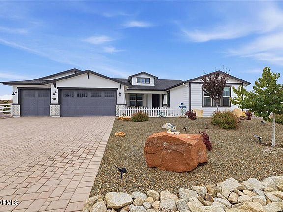 MOVE-IN READY !! Meticulously cared-for and perfectly situated on a one-acre corner lot in the highly sought-after Heritage Pointe subdivision, this stunning modern ranch offers the ideal blend of luxury, comfort, and peaceful country living, just minutes from Chino Valley amenities and a short drive to Prescott. Thoughtfully designed with a spacious open-concept, split floor plan, this 4-bed, 2.5-bath home features a formal dining room off the foyer and a beautifully upgraded chef's kitchen complete with a large granite island, built-in stainless-steel appliances, a walk-in pantry, and a dedicated coffee bar. The great room boasts high ceilings, luxury tile flooring, and expansive sliding glass doors that open to the oversized backyard, creating seamless indoor-outdoor living.