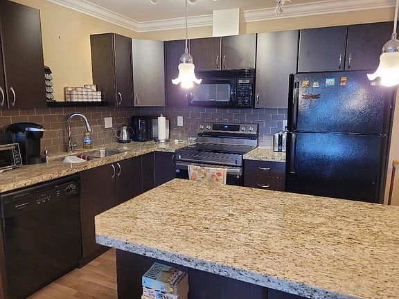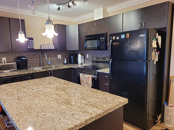 Welcome to Viva On Park! Top floor 2 bedroom 2 bath corner unit with views of sunsets and Historic Downtown. Kitchen features granite counter tops, plenty of cabinet space and open concept. Living room with fireplace. Spacious primary bedroom with 10' ceilings and 4 piece full bathroom. 1 underground parking space and 1 storage locker. Walk to downtown with stores, restaurants, coffee shops and grocery.