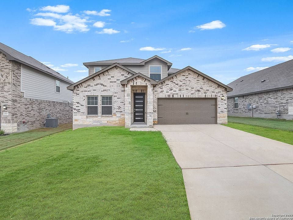 Brand NEW energy-efficient home ready NOW! Skip your commute and work from home in flex room turned home office. Linen cabinets with off-white grey granite countertops, grey brown EVP flooring and warm grey brown carpet in our Serene package. Residents can enjoy beautiful surrounding hill-country views, a community pool, clubhouse, and playground. Shopping, dining, golf, and Sea World are just down the road. Known for our energy-efficient features, our homes help you live a healthier and quieter lifestyle while saving thousands on utility bills.
