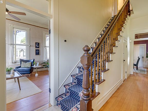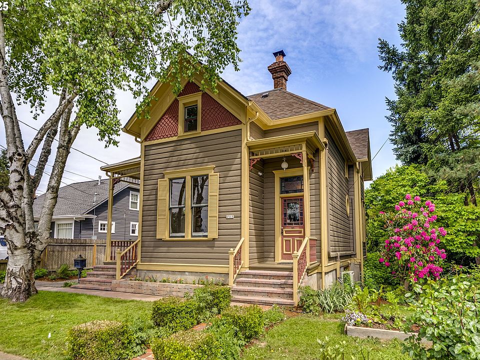 Queen Anne Victorian brimming with charm and character. The "Pioneer-Henry Failing House". This beautifully preserved historic home features intricate detailing, original millwork, natural light, and inviting living areas. On the quiet part of Lake Road. Set in a peaceful neighborhood just 3 blocks from all the fun of historic downtown Milwaukie: light rail, dining, shops, food carts, bike trails, & boat ramp, plus First Friday, the Sunday Farmer’s Market and other beloved local events. This storybook Victorian offers the ideal combination of fairytale appeal and modern convenience, on a big sunny lot that is over 6000 square feet. Updated kitchen with farmhouse sink, original leaded glass cupboards, Bosch gas range and oven with warming drawer, and Zephyr range hood. Energy efficient dishwasher with "air dry" cycle. Energy saving hybrid electric water heater. The main floor bedroom/sunroom makes a beautiful office. A primary bedroom is upstairs with lovely ensuite bath, walk-in shower, extra sink, 2 closets, and laundry. A big 3rd bedroom is upstairs, with walk-in closet & view. High-efficiency heat pump & 3 mini-splits for main heating and cooling, plus furnace backup. Electric vehicle plug-in. Recent roof, exterior paint and much more (ask for list of updates). Tall full basement with large wood slider to yard and workshop/garden room. Buyer to verify sq ft, schools, and all info. Built in downtown Portland in approximately 1859 for the Henry Failing Family, the pre civil war home was taken apart and barged down the river to a new site at Lake Kellogg in 1900. In 1914 it was moved across Lake Road to its current beautiful, peaceful location. Don't miss the decommissioned dumbwaiter and the glorious door hinges on the front door (and some other doors). More details and photos on Virtual tour site. [Home Energy Score = 2. HES Report at https://rpt.greenbuildingregistry.com/hes/OR10238301]