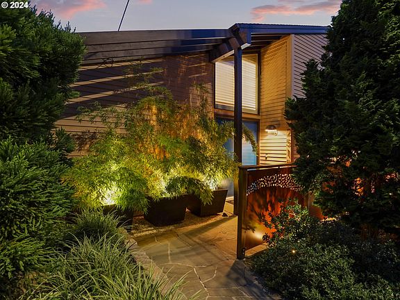 Exquisite home in Portland Heights exudes luxury style & comfort. Enter the inviting foyer open to expansive living room complete w/soaring ceilings, beautiful hardwood floors, gas fireplace & access to outdoor hardwood IPE deck , perfect for entertaining. Spacious gourmet kitchen complete w/intimate eat area, granite counters, stainless appliances,hardwood floors,built in oven & microwave. Nearby dining room accented with Herman Miller saucer lights is perfect for intimate to grand gatherings. Retreat to comfortable family room, office or reading room w/fireplace, hardwoods & soaring ceilings. Serene primary suite on main floor includes double doors that lead to private patio & extraordinary garden area, resplendent with beautiful plantings. Walk in closet, remodeled spa-like bath in 2024 w/double sinks, heated floor,soaking tub,tiled shower complete the picture. The 2nd en- suite bedroom is also on the main floor and is simply lovely w/double closet & hardwoods. Lower level awaits your guests offering convenient kitchen area, large bedroom w/built-ins + full bath , tiled walk in shower.Don't miss the main floor laundry including built-ins/sink & folding area. Double car attached garage and lots of storage.This home was lovingly designed by Knight & Piercy, famously known for their mid-century modern Portland homes. Home Energy Score of 7 ! Nearby Ainsworth school, Vista Cafe, parks/trails NW 23rd Shopping area, hospitals, city and all Portland has to offer.