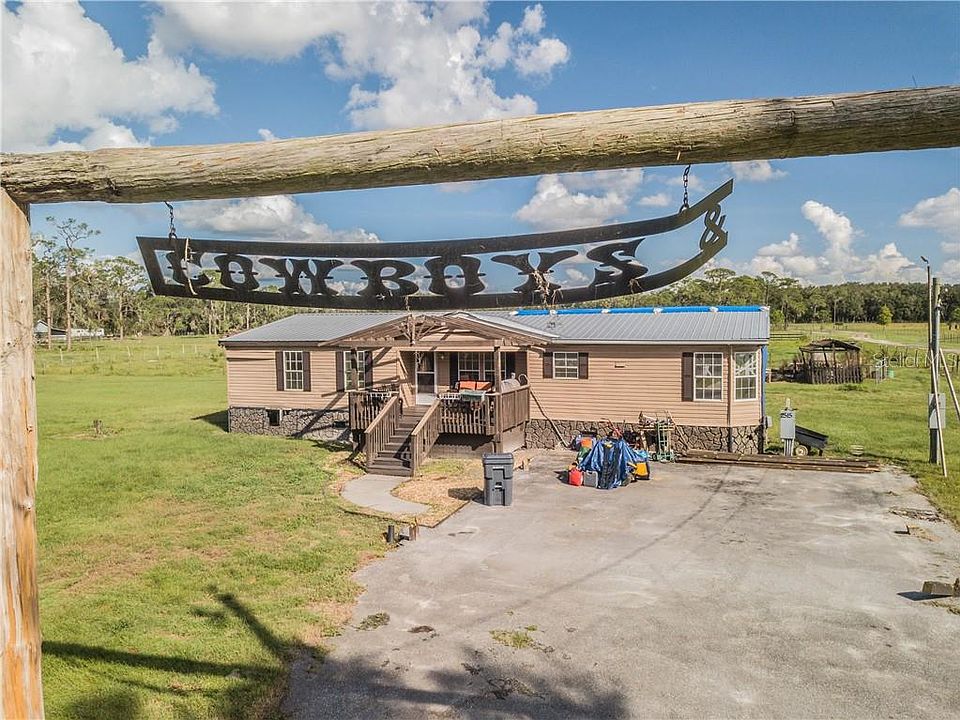 Tornado sale! Home was compromised from storm! Nothing was damaged inside the home ! BRAND NEW A/C was just put in. Roof , windows and some siding was damaged.Foundation was not compromised! Fix up or remove home and build a new one on this 5 acre plat of land! This is a horse lovers dream! Over 5 acres fully fenced out in the country but yet close to major shopping and Interstate 4! Bring your farm animals. Septic, electrical and pole hookups and well water all working and in great condition. This used to be a dairy farm so the soil is very rich with lots of grass for your farm animals. Beautiful cypress wood flooring. Four bedrooms plus an office. Master bedroom is exquisite! Large galvanized tub with walk in shower and a barn door in the master bedroom! Interior of house freshly painted! Stainless steel appliances in kitchen which stay, 2018 and New washer and dryer which are included! Hand crafted wagon wheel light fixtures. Bright and open floor plan. New water well pump in 2018. You even have your very own electrical gate! Peaceful and serene surroundings! Don't miss out! Make your appointment to see today!