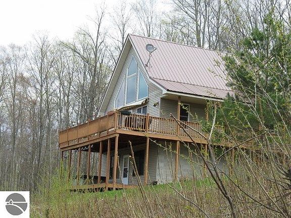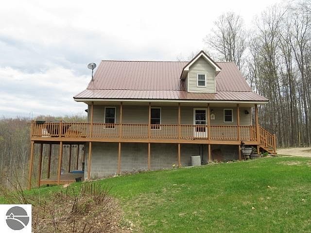 Privacy, serenity compliment this amazing like new home! 10 wooded acre parcel gives countryside view for miles. Home features metal roof, multi level decking, massive windows with amazing view, cathedral ceiling, open plan, central air, loft master bedroom, walkout lower level tastefully finished off as tiki bar room, hot tub, sauna, 26x48 pole barn & a very secluded location. This rare find is in immaculate condition & value priced.