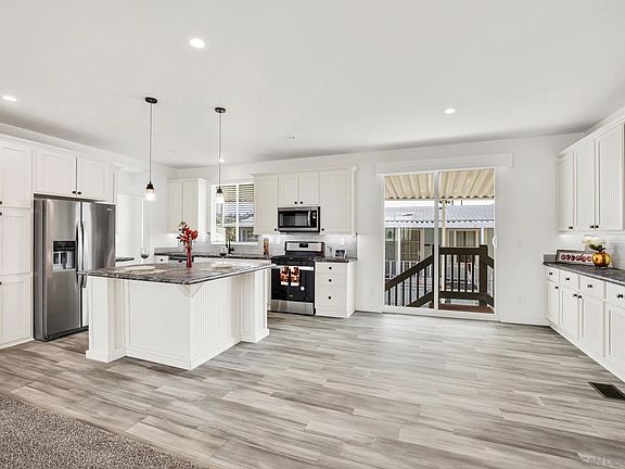 Rarely on the market in a manufactured home, this home offers four bedrooms in a quiet family park! Near the rear of the park, just two homes away from generous guest parking, this home offers all stainless appliances, which include side-by-side refrigerator w/water & ice dispenser, self cleaning range, built-in microwave, sink & dishwasher. All hardware is black on white beaded wood cabinets. The kitchen offers an island and the dining room (large enough for a formal dining room table) offers extra counter space and cabinets with a slider that leads to the carport. Kitchen also offers recessed lighting, pendent lighting over island, under cabinet LED lights and pull down spring faucet, and custom backsplash. There are ceiling fans in the living room and master bedroom. Master bath offers his and her sinks, tiled walk-in shower, ample storage and a separate area, with door for toilet. The guest bathroom offers a shower/tub combo. A custom porch was built at the side of the home that leads to the front of the house, and to the back yard. W/D hook ups in laundry room off of kitchen. A shed sits at the end of the carport that will room two vehicles. Central heating & air is included. The house is landscaped with plants, pigmy palm trees and auto irrigation. The park offers a nice playground, pool, jacuzzi and is near bus line.